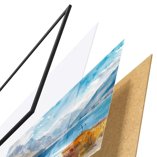 Il poster è composto da cornice, plexiglass, immagine stampata e supporto in truciolato. Il poster può essere immediatamente appeso alla parete grazie ai supporti sul retro.