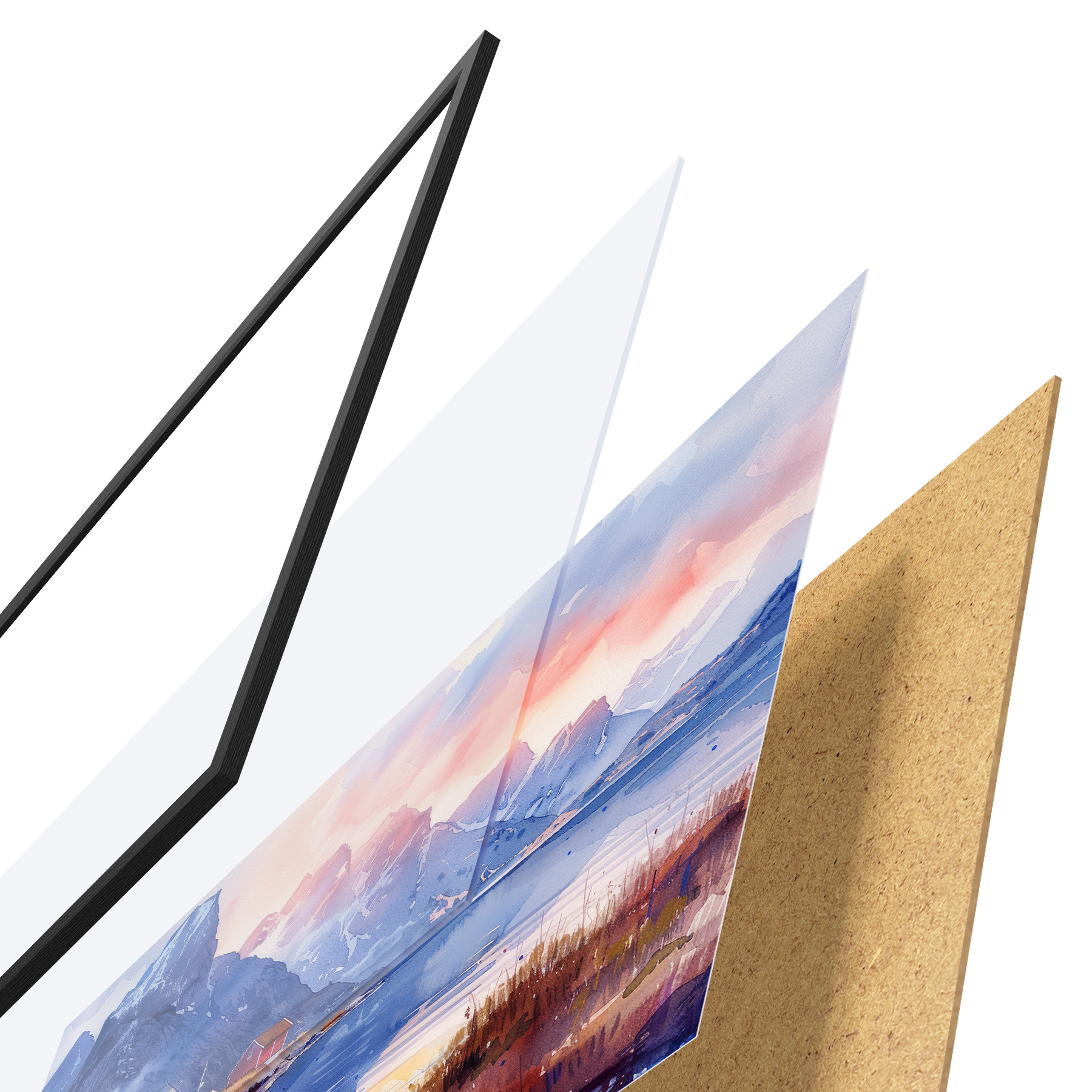 Il poster è composto da cornice, plexiglass, immagine stampata e supporto in truciolato. Il poster può essere immediatamente appeso alla parete grazie ai supporti sul retro.