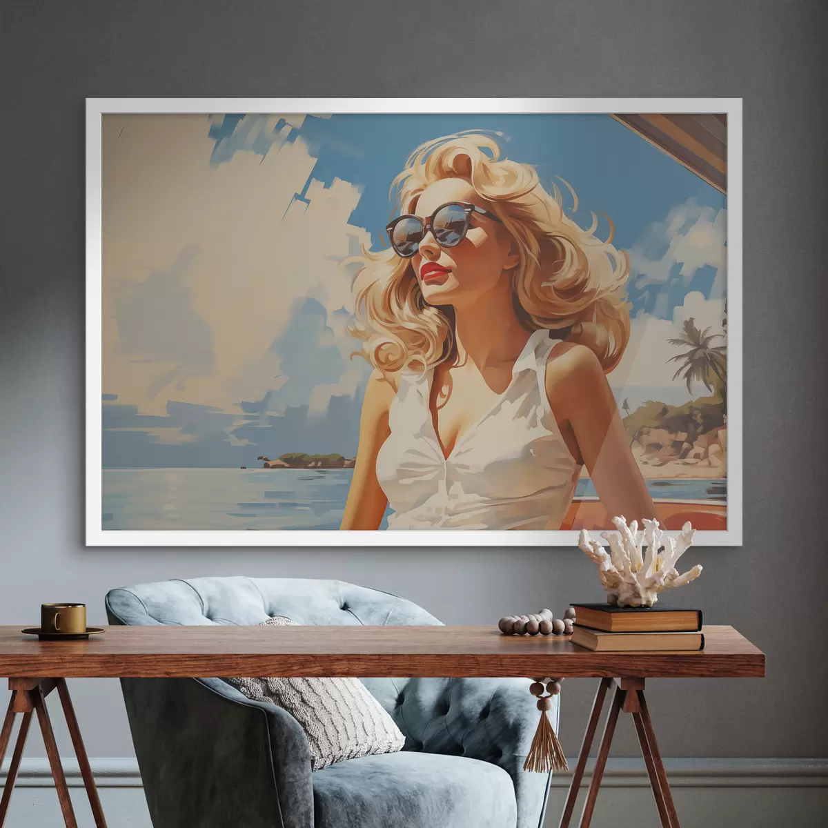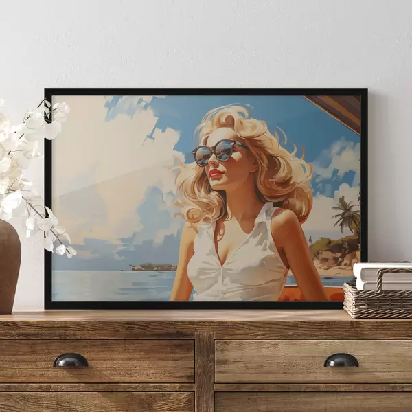 Poster Illustrazione di sfondo ragazza bionda sul mare Nr f40321