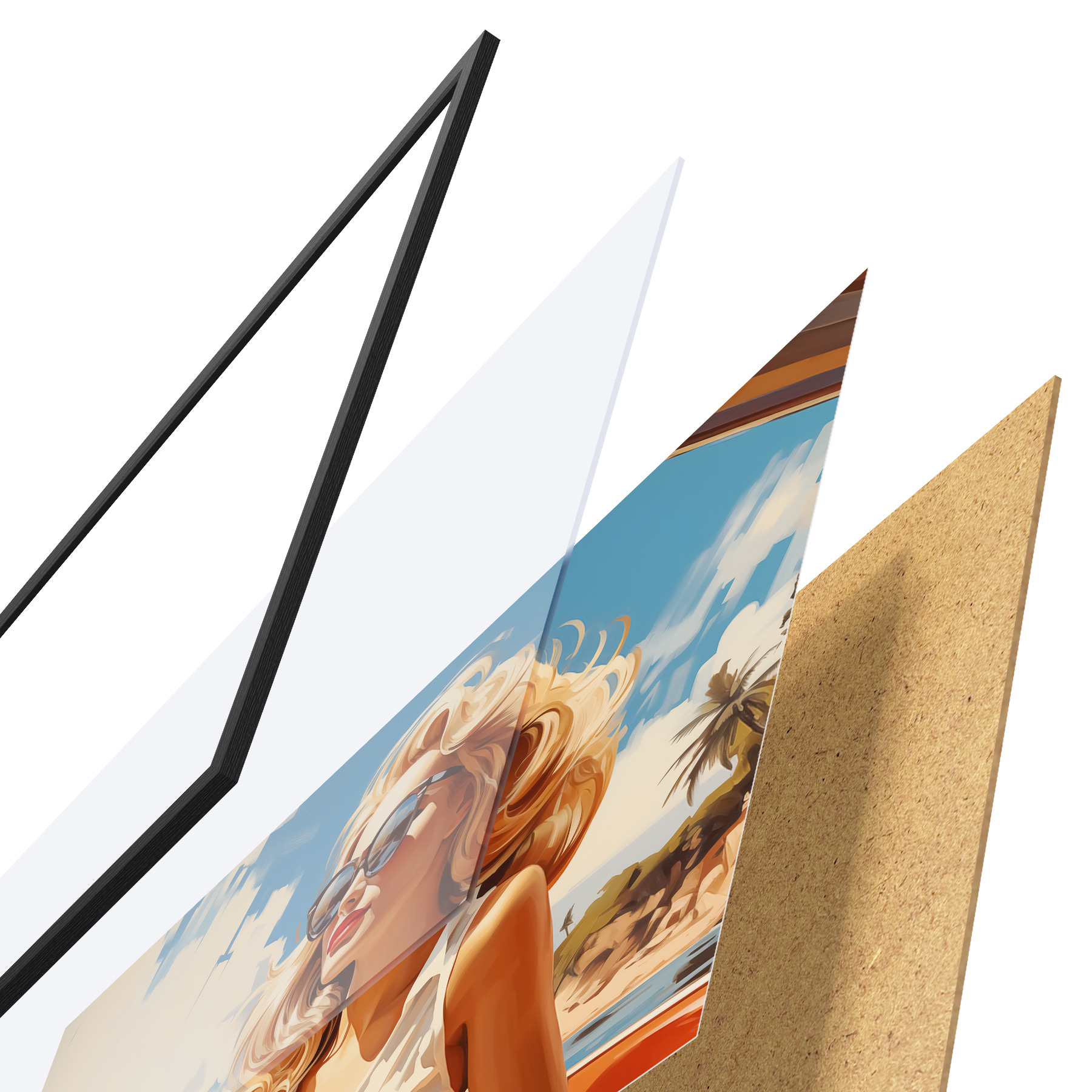Il poster è composto da cornice, plexiglass, immagine stampata e supporto in truciolato. Il poster può essere immediatamente appeso alla parete grazie ai supporti sul retro.