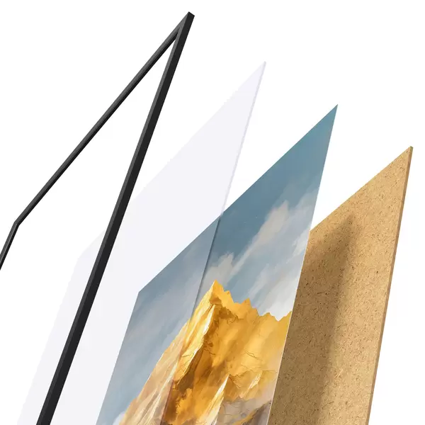 Il poster è composto da cornice, plexiglass, immagine stampata e supporto in truciolato. Il poster può essere immediatamente appeso alla parete grazie ai supporti sul retro.