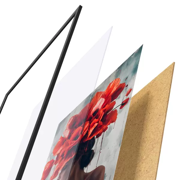 Il poster è composto da cornice, plexiglass, immagine stampata e supporto in truciolato. Il poster può essere immediatamente appeso alla parete grazie ai supporti sul retro.