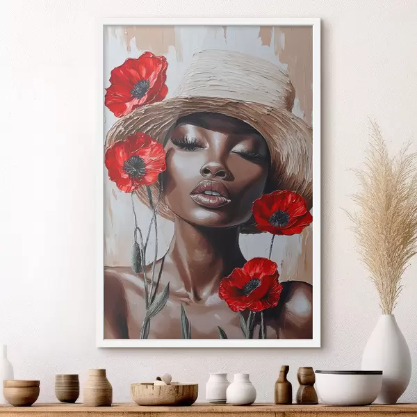 Poster Ritratto di una donna con un cappello con papaveri rossi Nr f40350