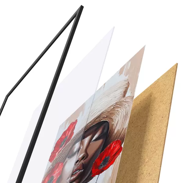 Il poster è composto da cornice, plexiglass, immagine stampata e supporto in truciolato. Il poster può essere immediatamente appeso alla parete grazie ai supporti sul retro.