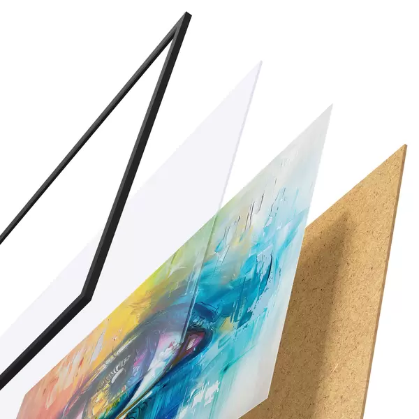 Il poster è composto da cornice, plexiglass, immagine stampata e supporto in truciolato. Il poster può essere immediatamente appeso alla parete grazie ai supporti sul retro.