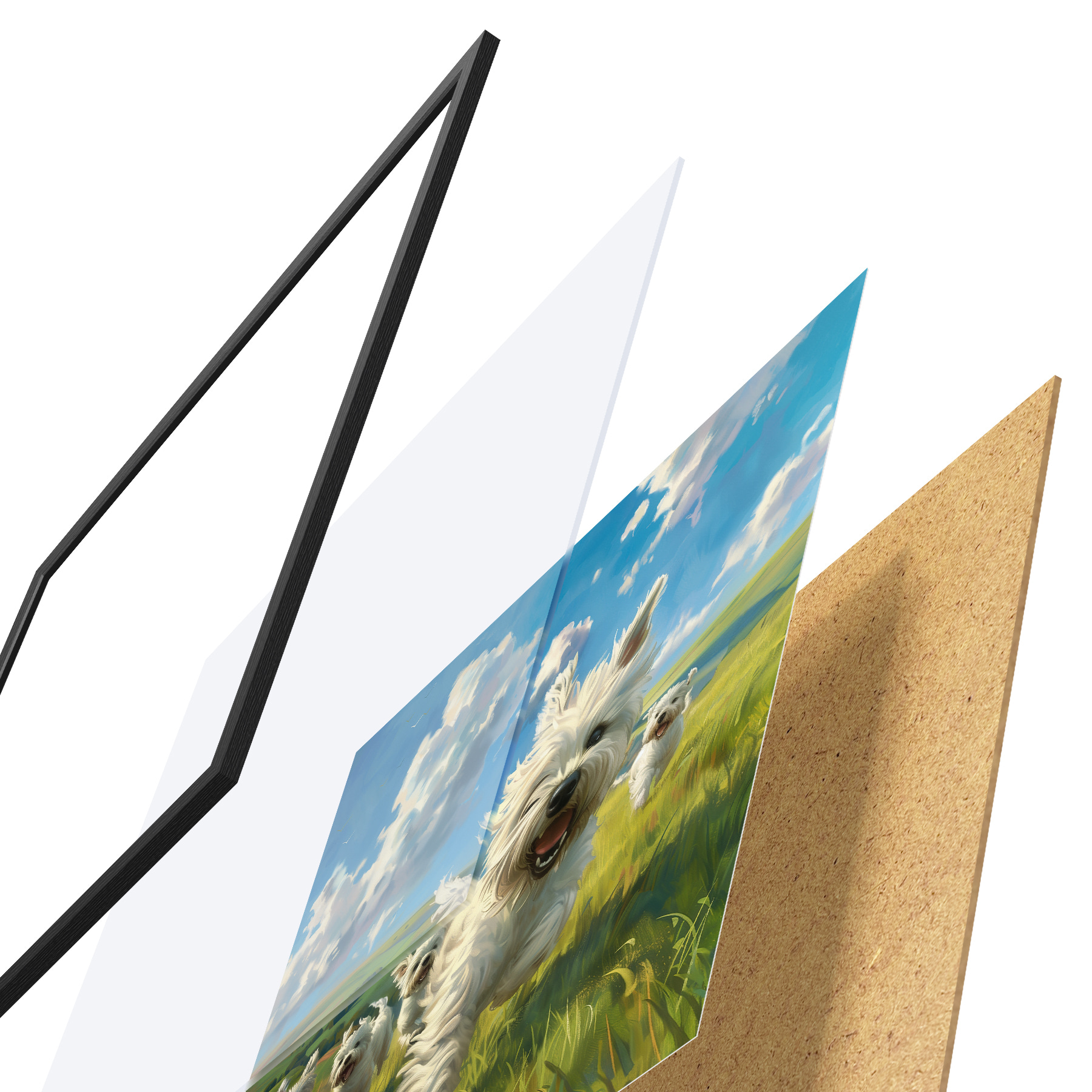 Il poster è composto da cornice, plexiglass, immagine stampata e supporto in truciolato. Il poster può essere immediatamente appeso alla parete grazie ai supporti sul retro.