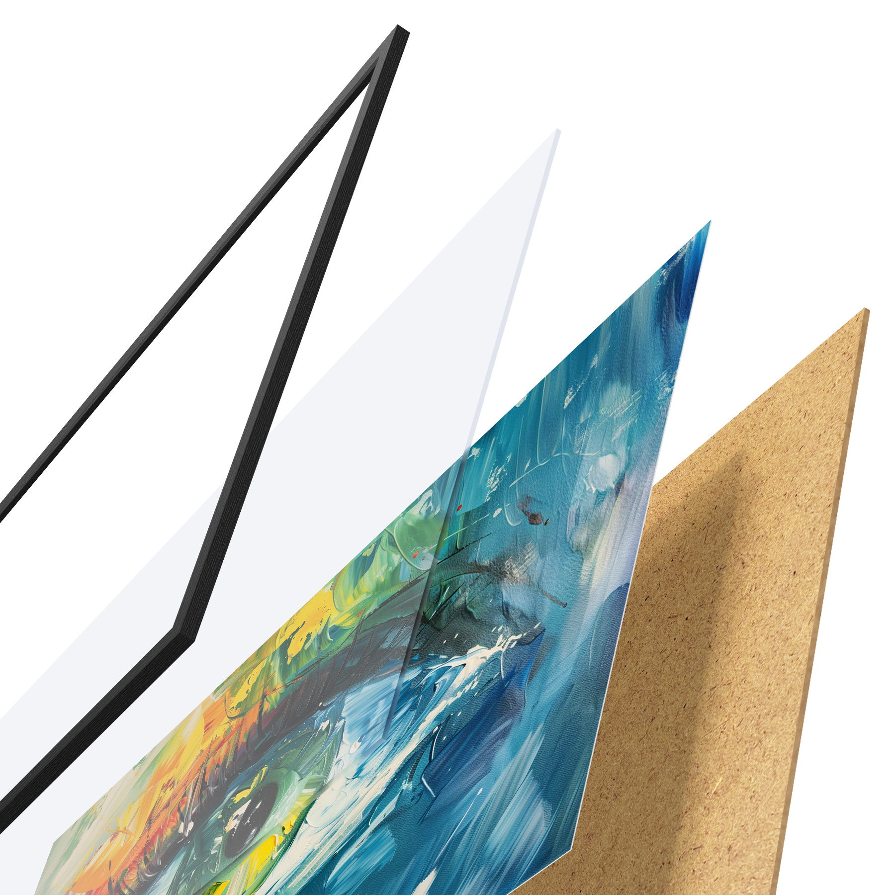 Il poster è composto da cornice, plexiglass, immagine stampata e supporto in truciolato. Il poster può essere immediatamente appeso alla parete grazie ai supporti sul retro.