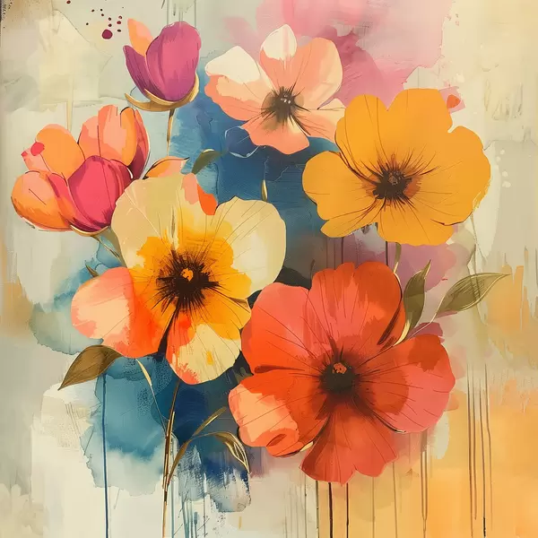 Poster Fiori acquerellati su uno sfondo astratto Nr f40371