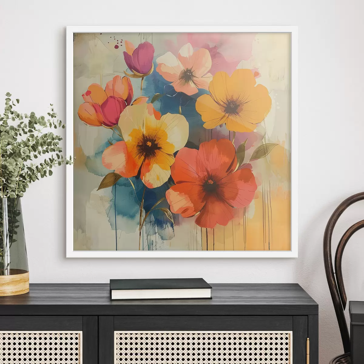 Poster Fiori acquerellati su uno sfondo astratto f40371