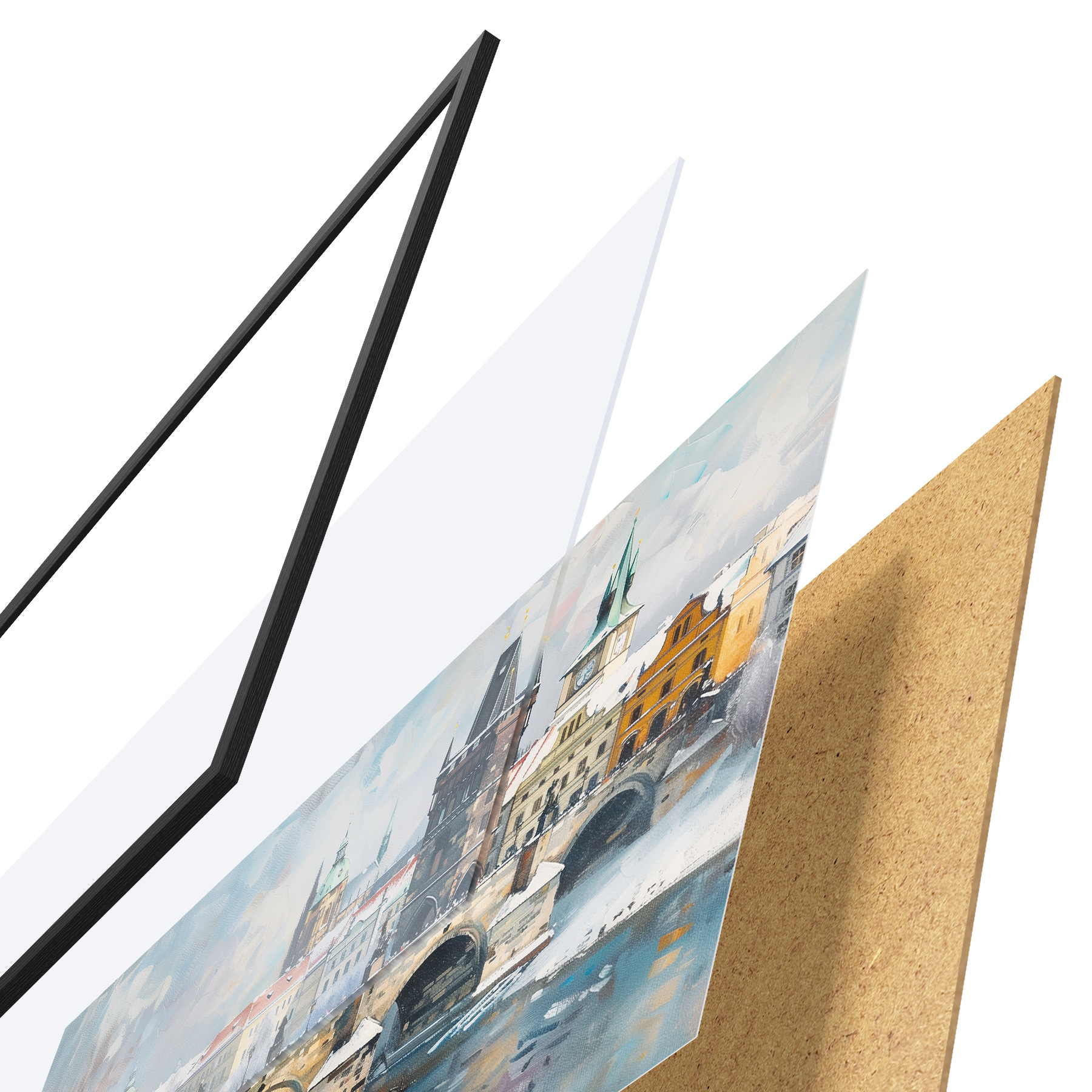 Il poster è composto da cornice, plexiglass, immagine stampata e supporto in truciolato. Il poster può essere immediatamente appeso alla parete grazie ai supporti sul retro.