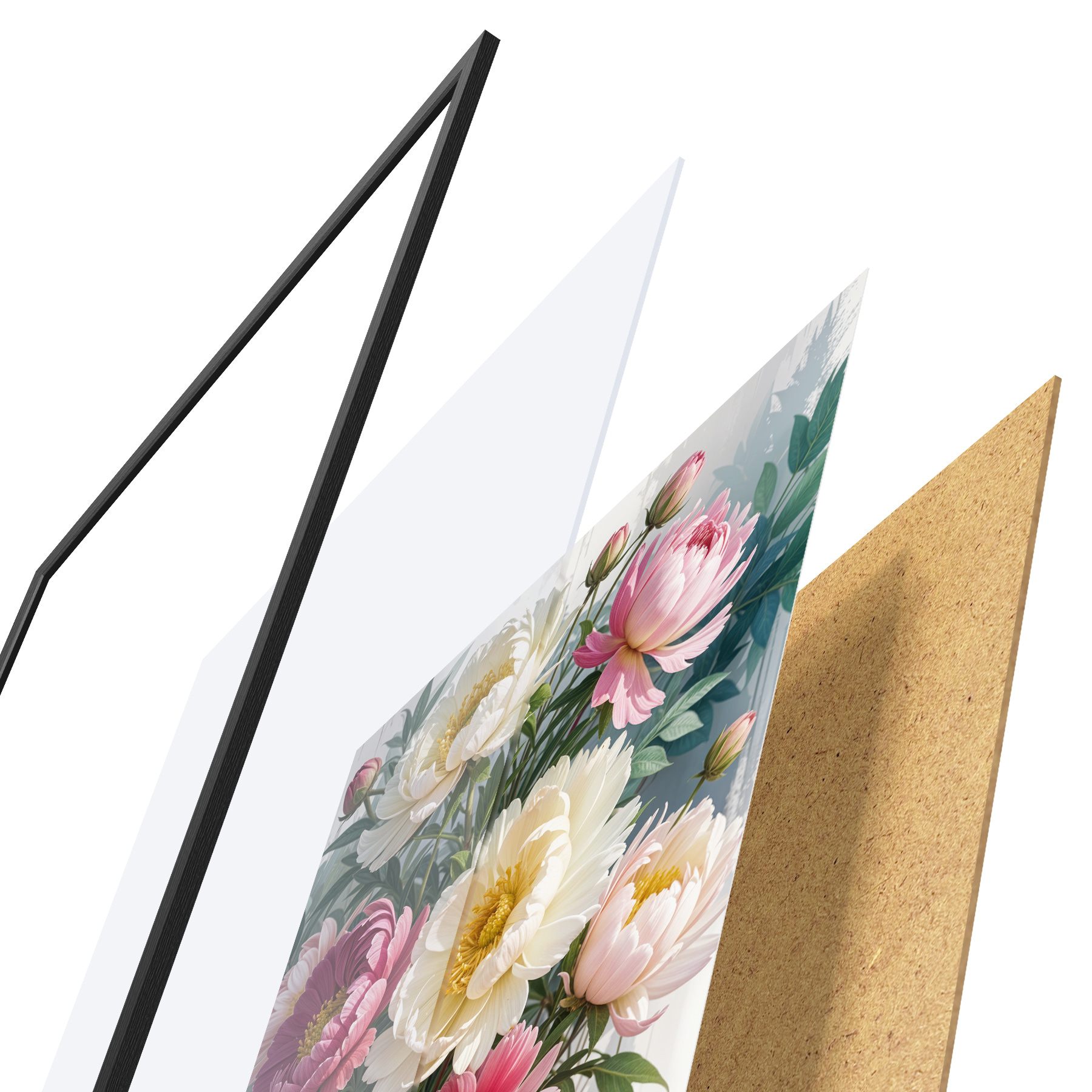 Il poster è composto da cornice, plexiglass, immagine stampata e supporto in truciolato. Il poster può essere immediatamente appeso alla parete grazie ai supporti sul retro.
