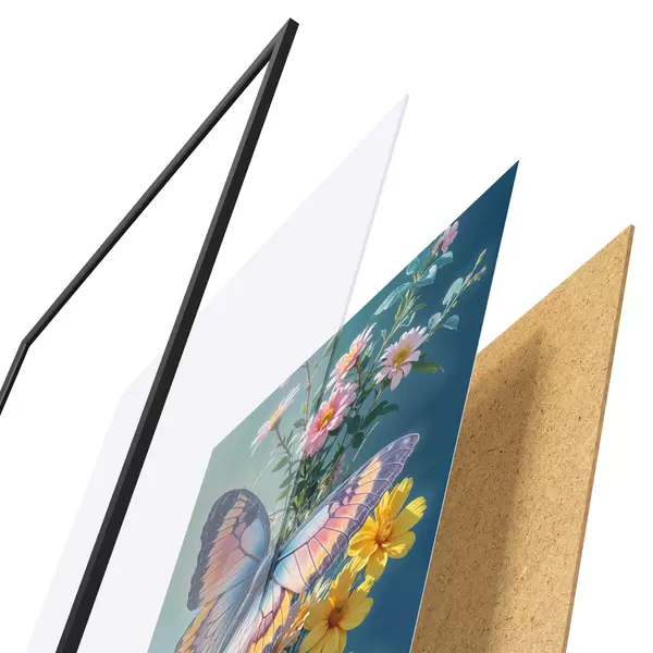 Il poster è composto da cornice, plexiglass, immagine stampata e supporto in truciolato. Il poster può essere immediatamente appeso alla parete grazie ai supporti sul retro.