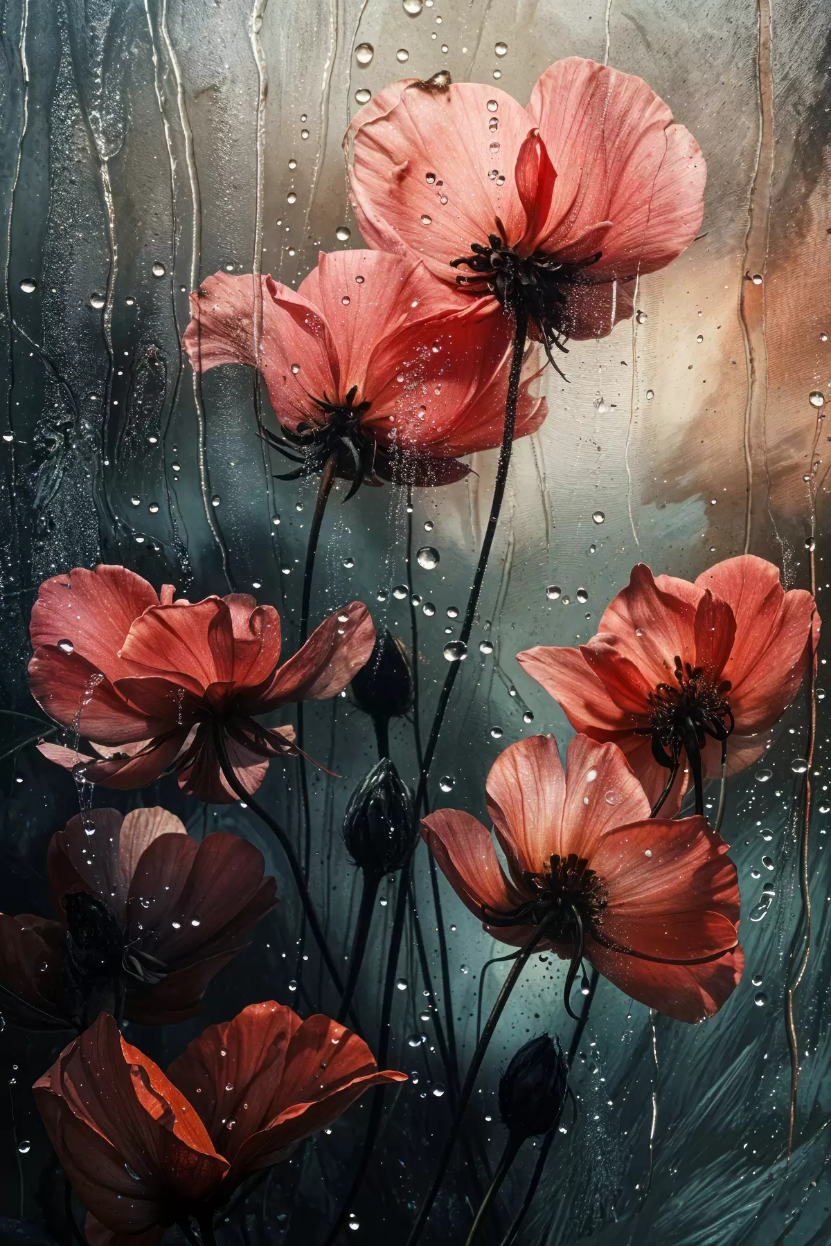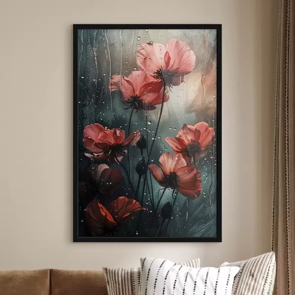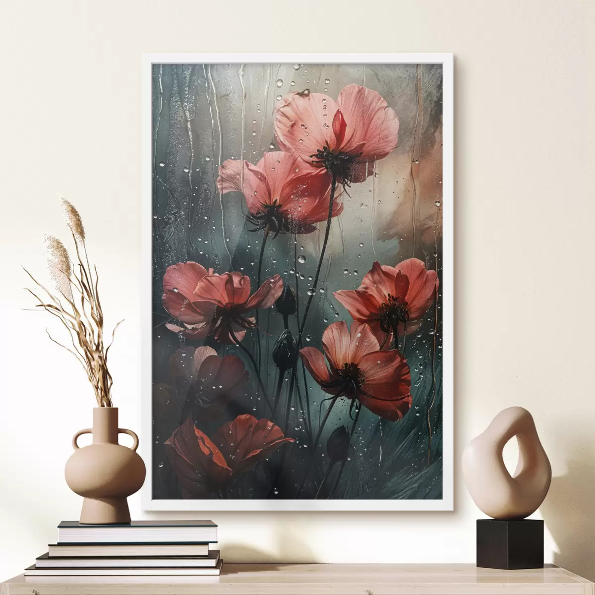 Poster Fiori rossi con gocce d'acqua su uno sfondo sfocato Nr f40412