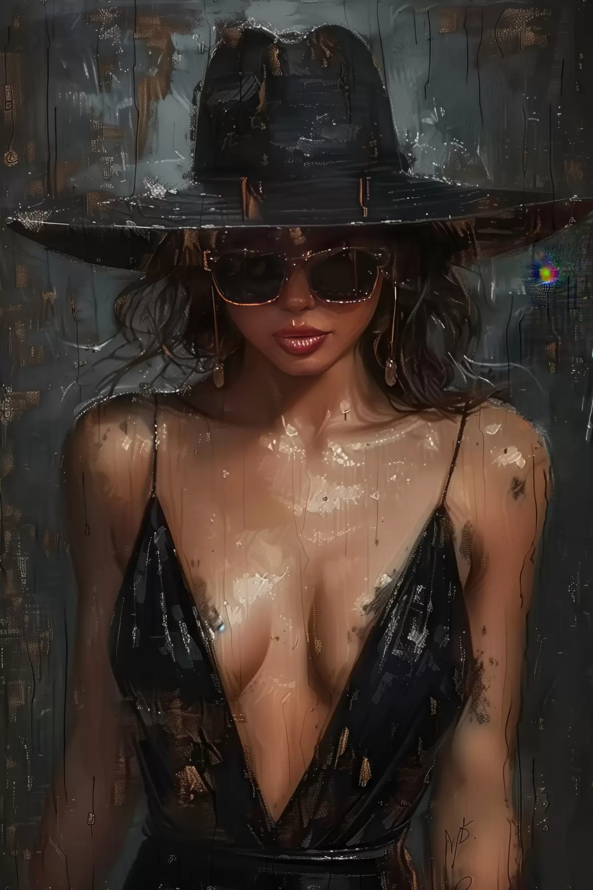 Poster Ragazza in abito nero e cappello nero Nr f40441