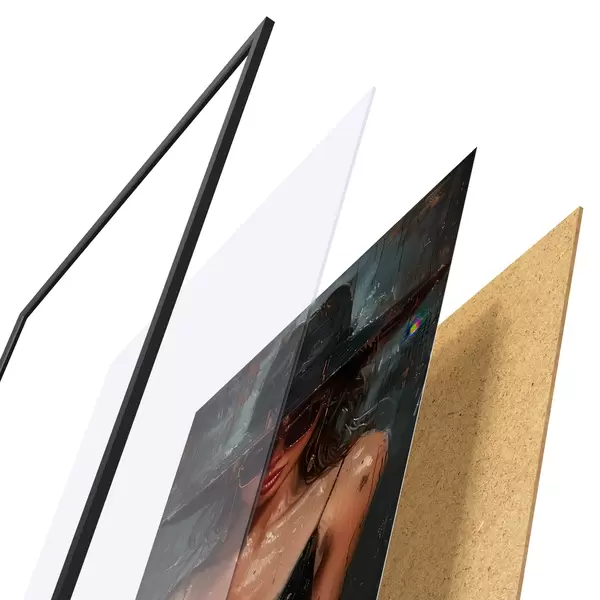 Il poster è composto da cornice, plexiglass, immagine stampata e supporto in truciolato. Il poster può essere immediatamente appeso alla parete grazie ai supporti sul retro.