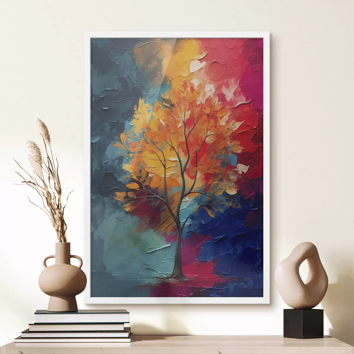 Poster Albero multicolore su sfondo acrilico astratto f40459