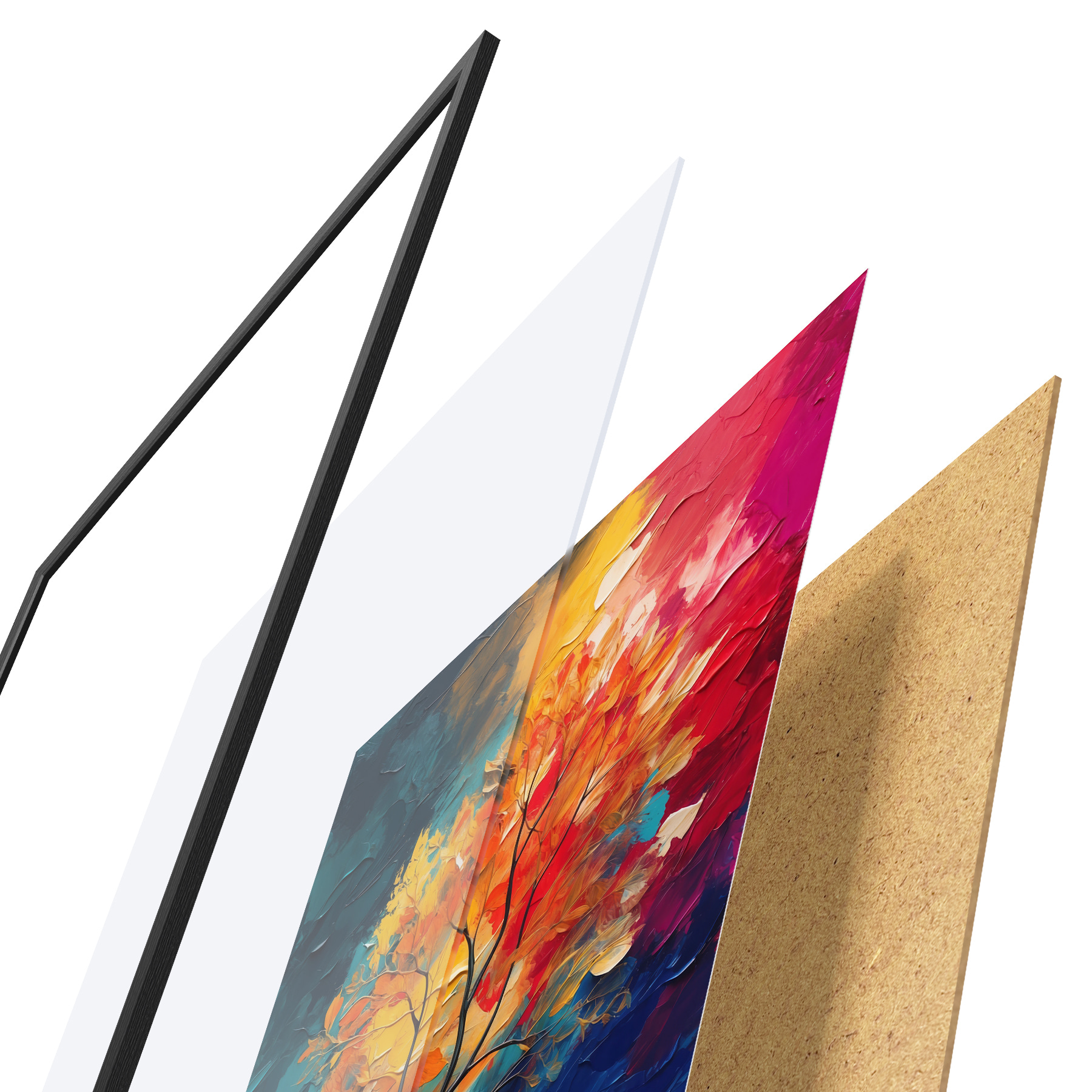 Il poster è composto da cornice, plexiglass, immagine stampata e supporto in truciolato. Il poster può essere immediatamente appeso alla parete grazie ai supporti sul retro.