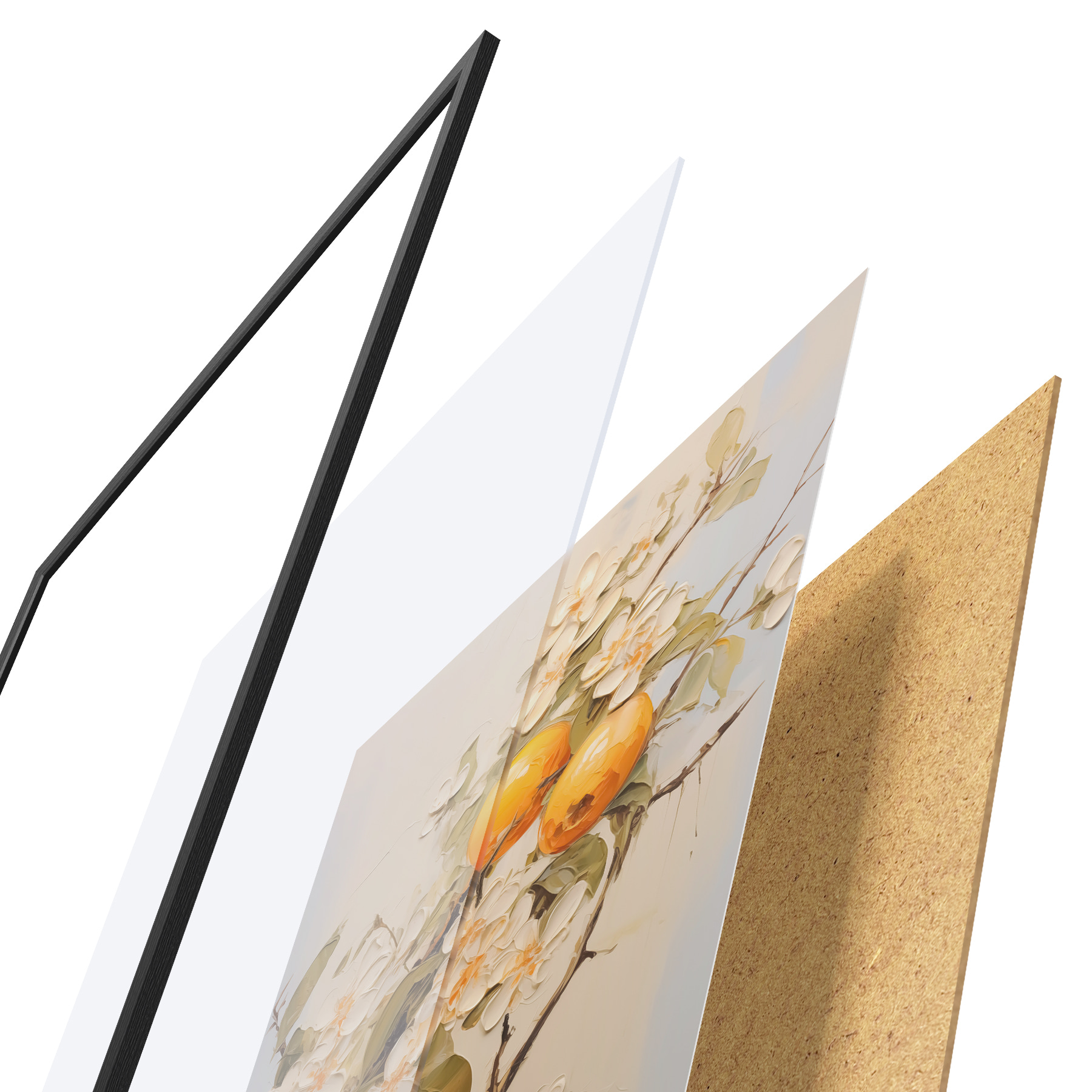 Il poster è composto da cornice, plexiglass, immagine stampata e supporto in truciolato. Il poster può essere immediatamente appeso alla parete grazie ai supporti sul retro.