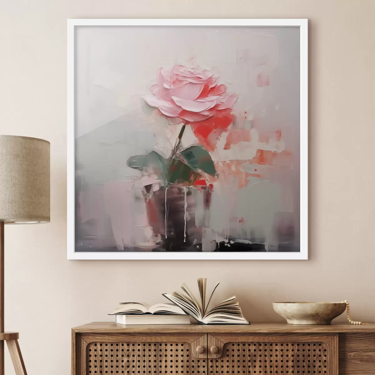 Poster Rosa astratta in un vaso, colore grigio, rosa, rosso f40515