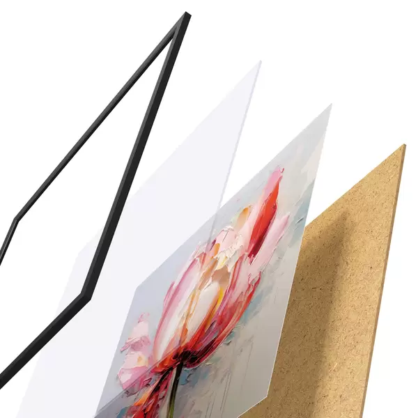 Il poster è composto da cornice, plexiglass, immagine stampata e supporto in truciolato. Il poster può essere immediatamente appeso alla parete grazie ai supporti sul retro.