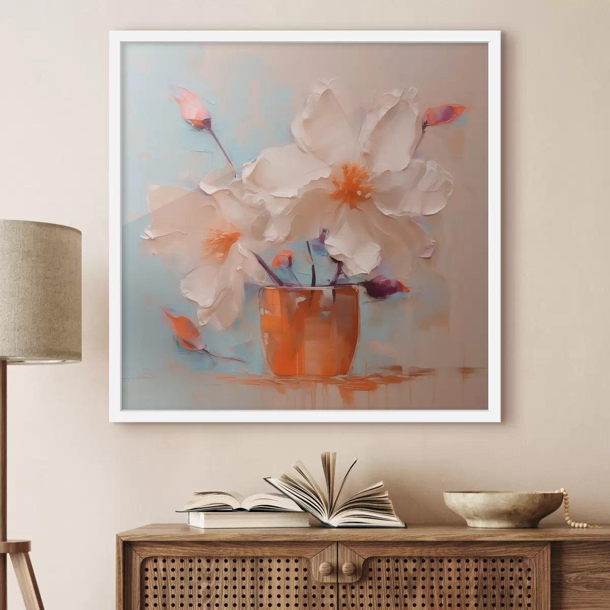 Poster Narcisi in un vaso, bianco, arancione, beige, blu f40520