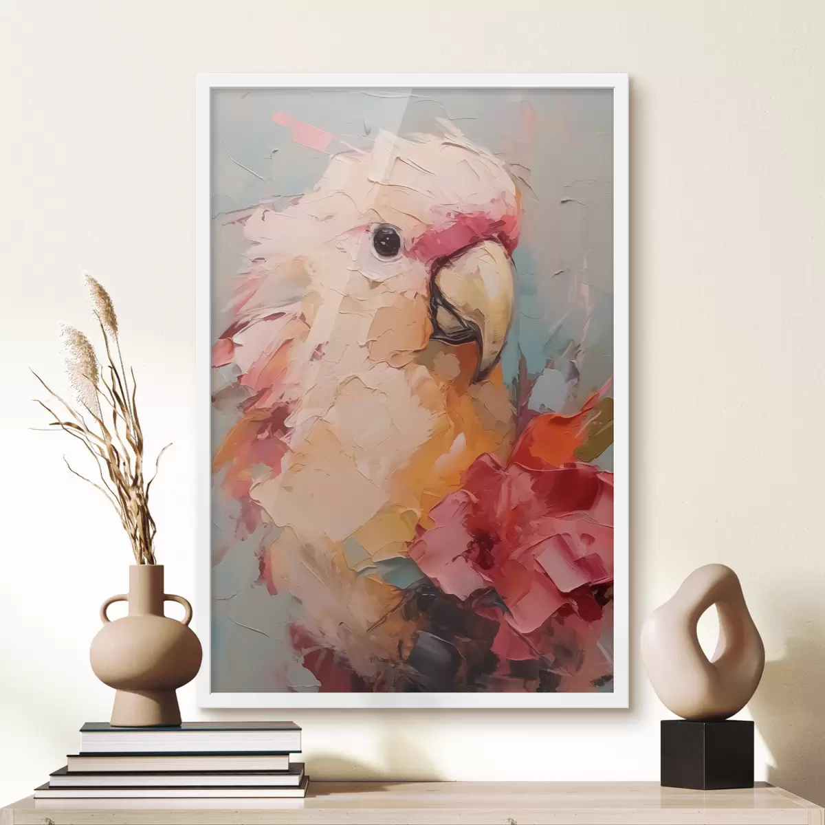 Poster Ritratto di un pappagallo cacatua, colore rosa, rosso, beige, grigio Nr f40525