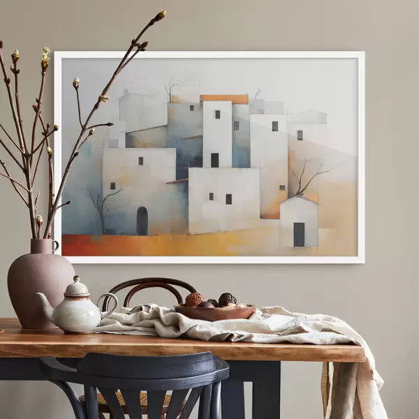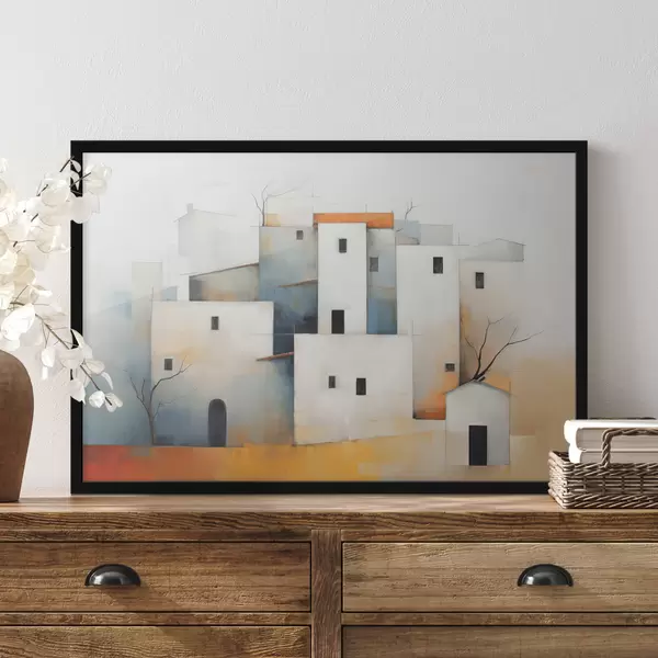 Poster Case bianche stilizzate astratte, colore rosso, arancione, giallo, blu Nr f40531