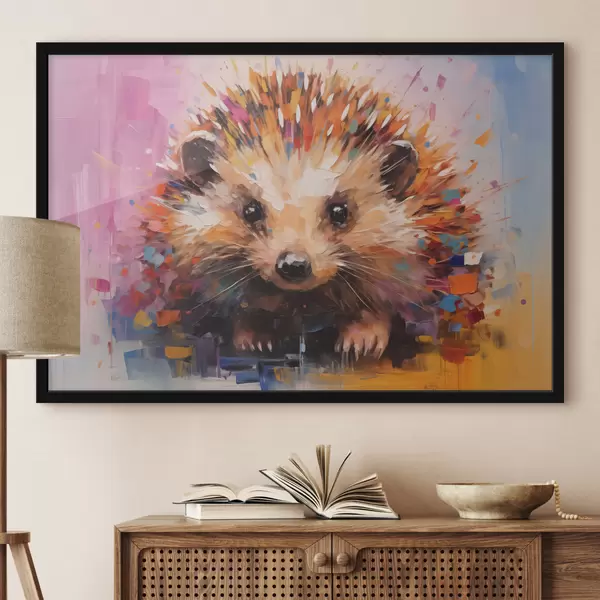 Poster Ritratto di un riccio dai colori vivaci, giallo, viola, blu, arancione, marrone Nr f40532