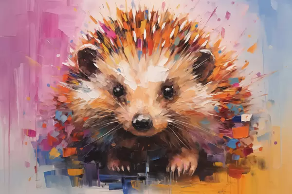 Poster Ritratto di un riccio dai colori vivaci, giallo, viola, blu, arancione, marrone Nr f40532