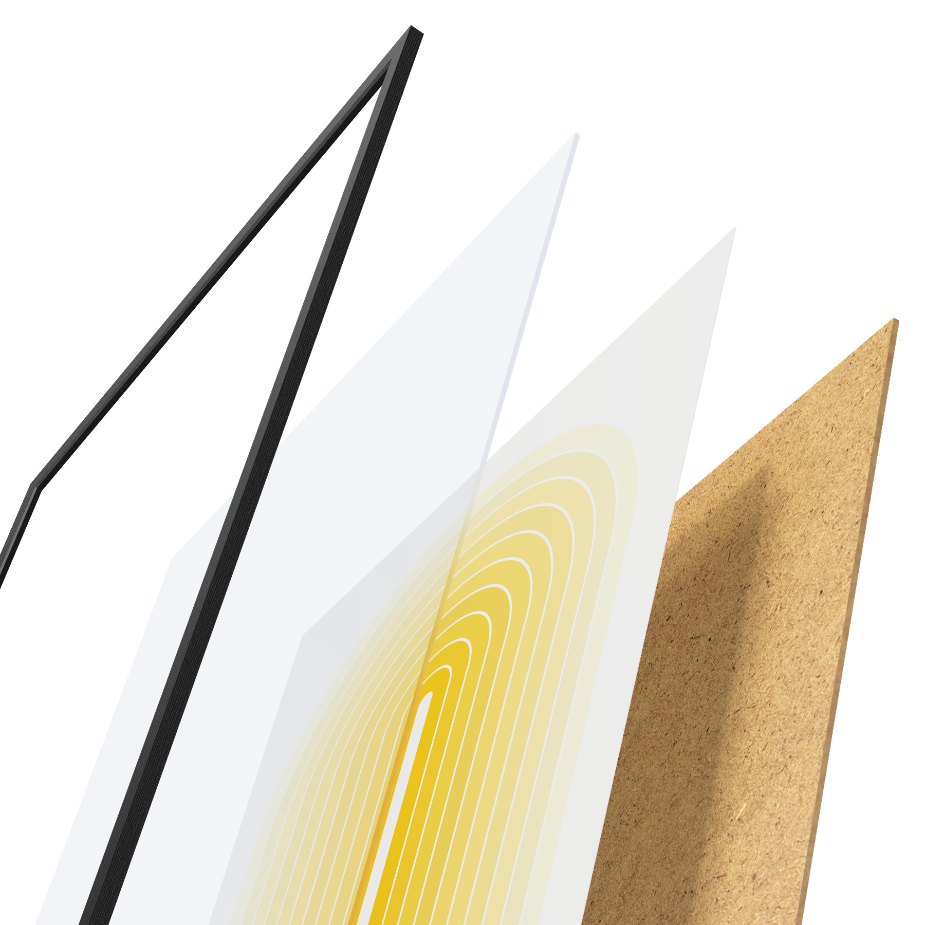 Il poster è composto da cornice, plexiglass, immagine stampata e supporto in truciolato. Il poster può essere immediatamente appeso alla parete grazie ai supporti sul retro.