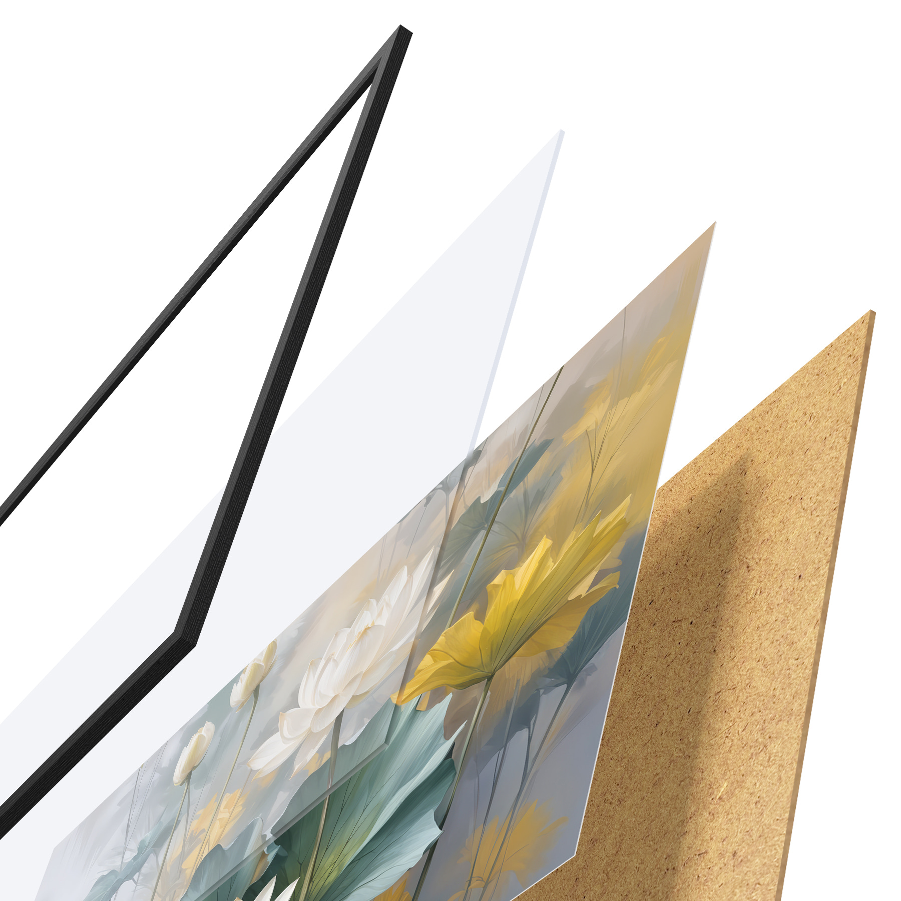 Il poster è composto da cornice, plexiglass, immagine stampata e supporto in truciolato. Il poster può essere immediatamente appeso alla parete grazie ai supporti sul retro.