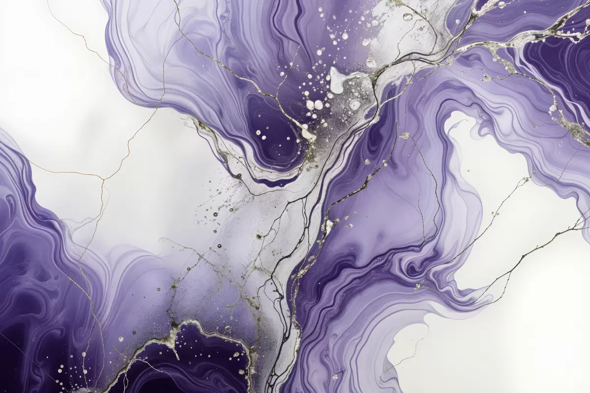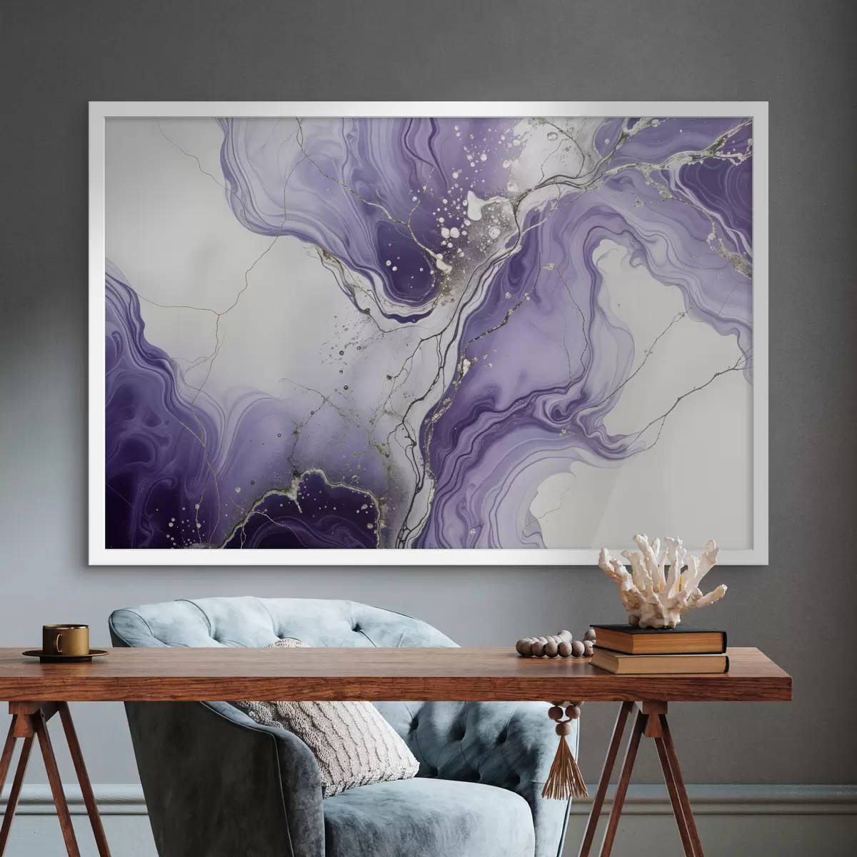Poster Stampa di composizione artistica fluida astratta con inchiostro vorticoso viola, bianco e grigio Nr f40566
