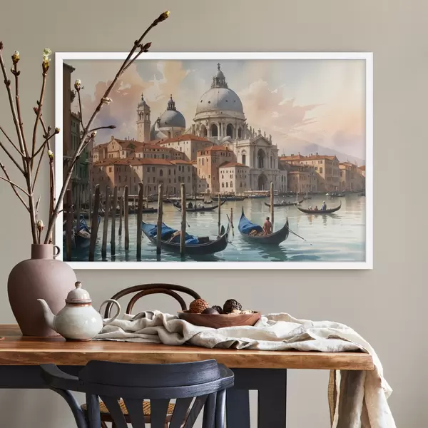 Poster Un dipinto panoramico ad acquerello raffigurante la vista del Canal Grande a Venezia, Italia f40573