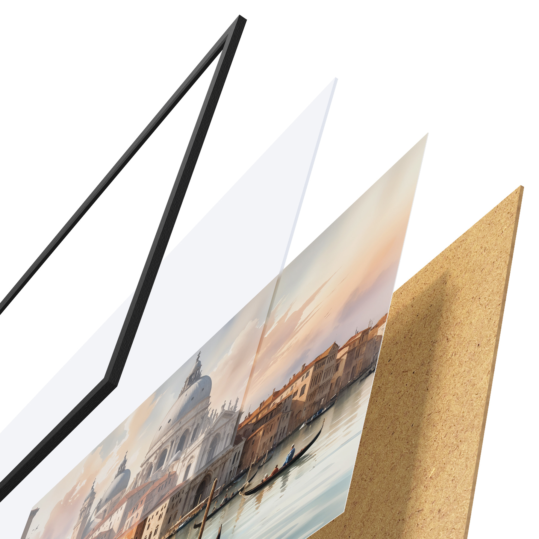 Il poster è composto da cornice, plexiglass, immagine stampata e supporto in truciolato. Il poster può essere immediatamente appeso alla parete grazie ai supporti sul retro.