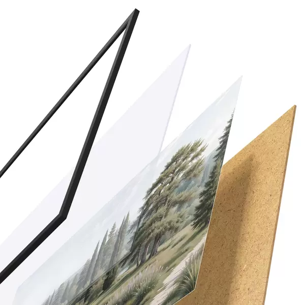 Il poster è composto da cornice, plexiglass, immagine stampata e supporto in truciolato. Il poster può essere immediatamente appeso alla parete grazie ai supporti sul retro.