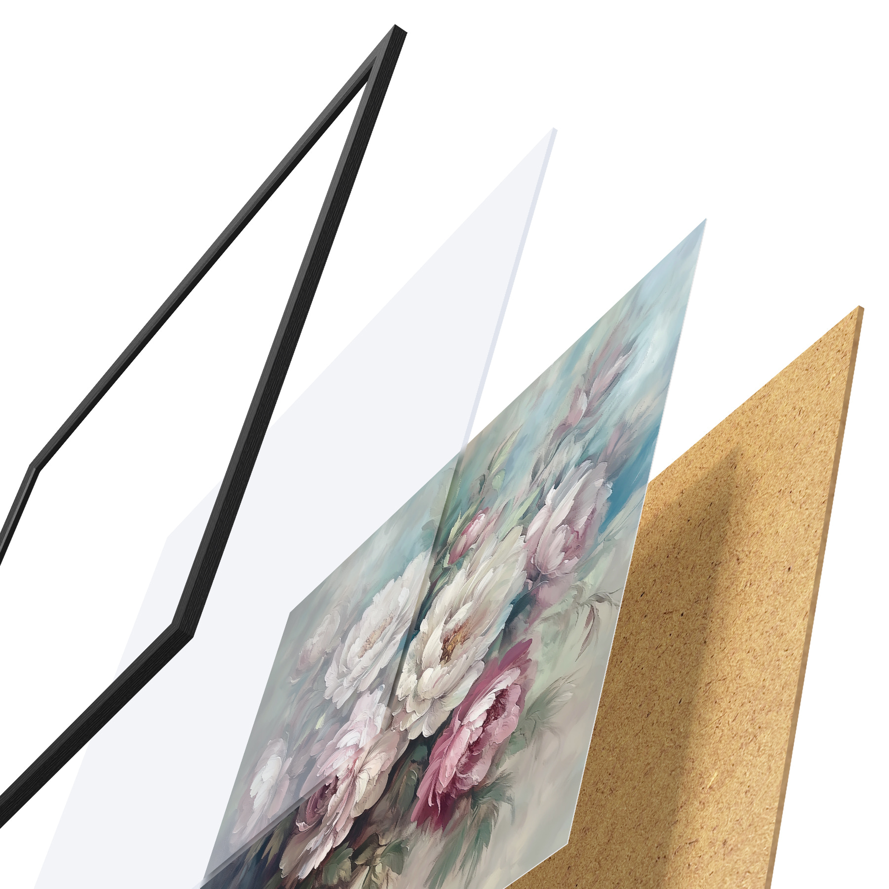 Poster Bouquet di peonie rosa e bianche in pittura ad olio Nr f40582