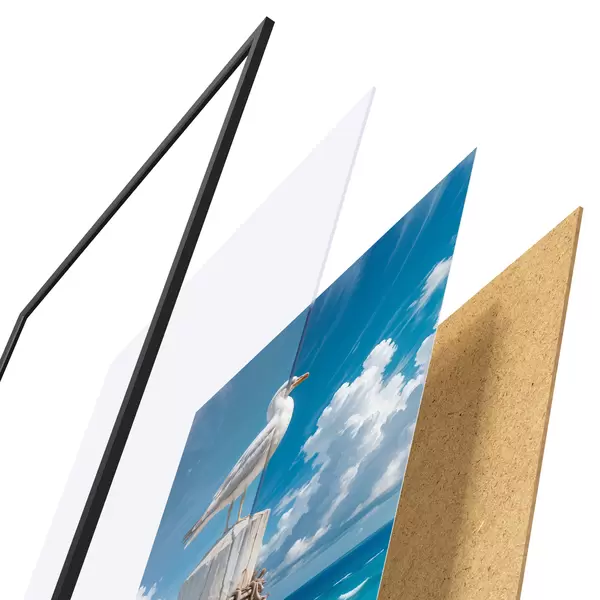 Il poster è composto da cornice, plexiglass, immagine stampata e supporto in truciolato. Il poster può essere immediatamente appeso alla parete grazie ai supporti sul retro.