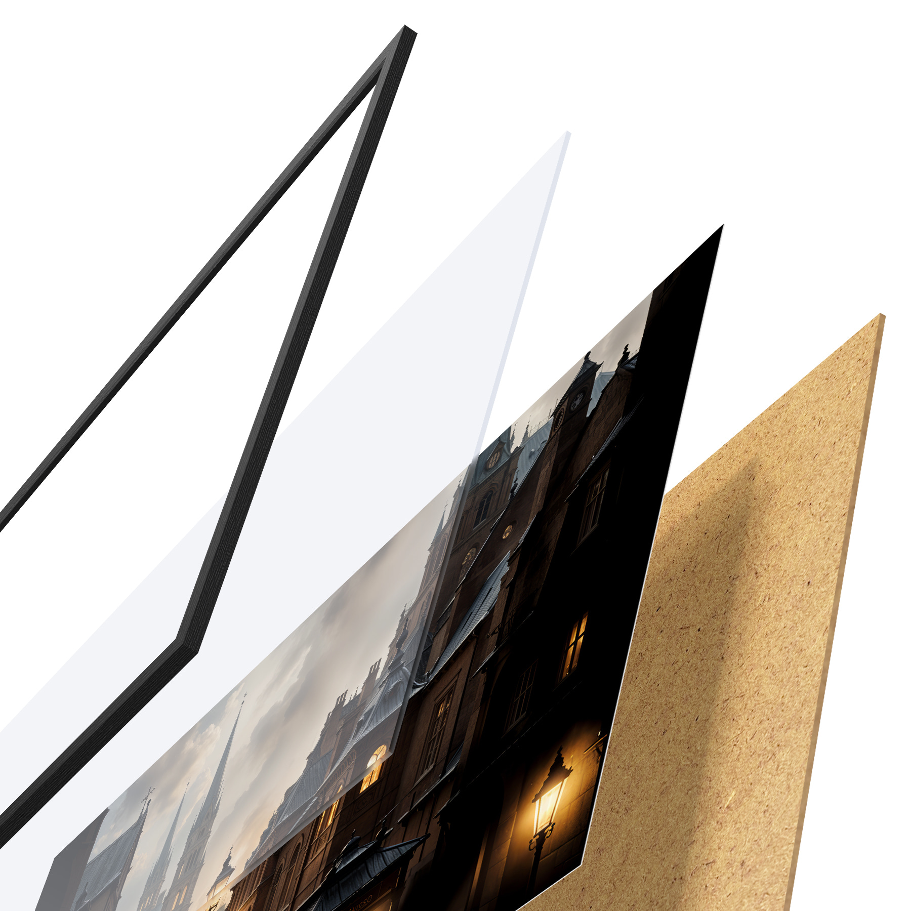 Il poster è composto da cornice, plexiglass, immagine stampata e supporto in truciolato. Il poster può essere immediatamente appeso alla parete grazie ai supporti sul retro.