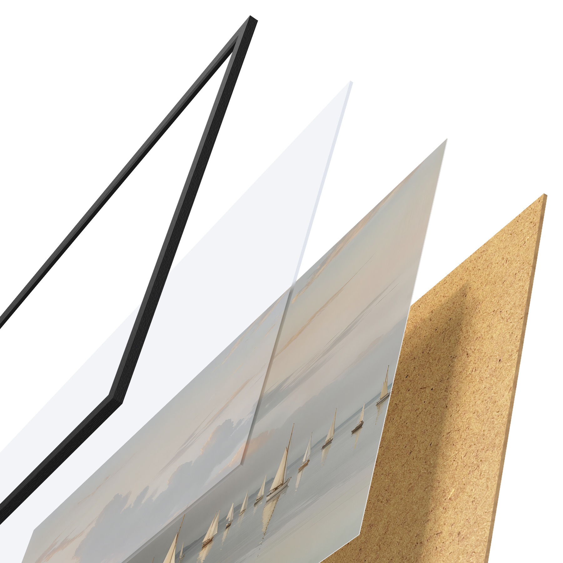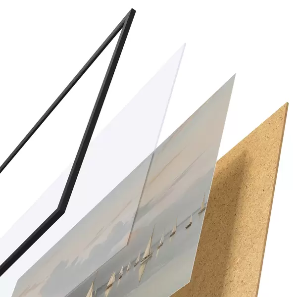 Il poster è composto da cornice, plexiglass, immagine stampata e supporto in truciolato. Il poster può essere immediatamente appeso alla parete grazie ai supporti sul retro.