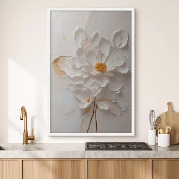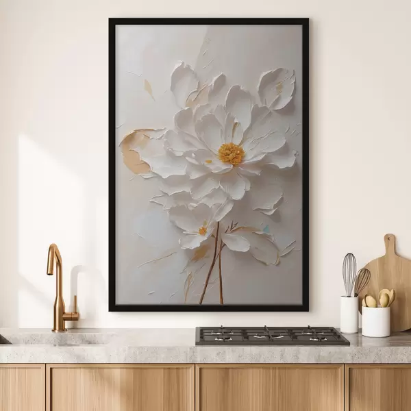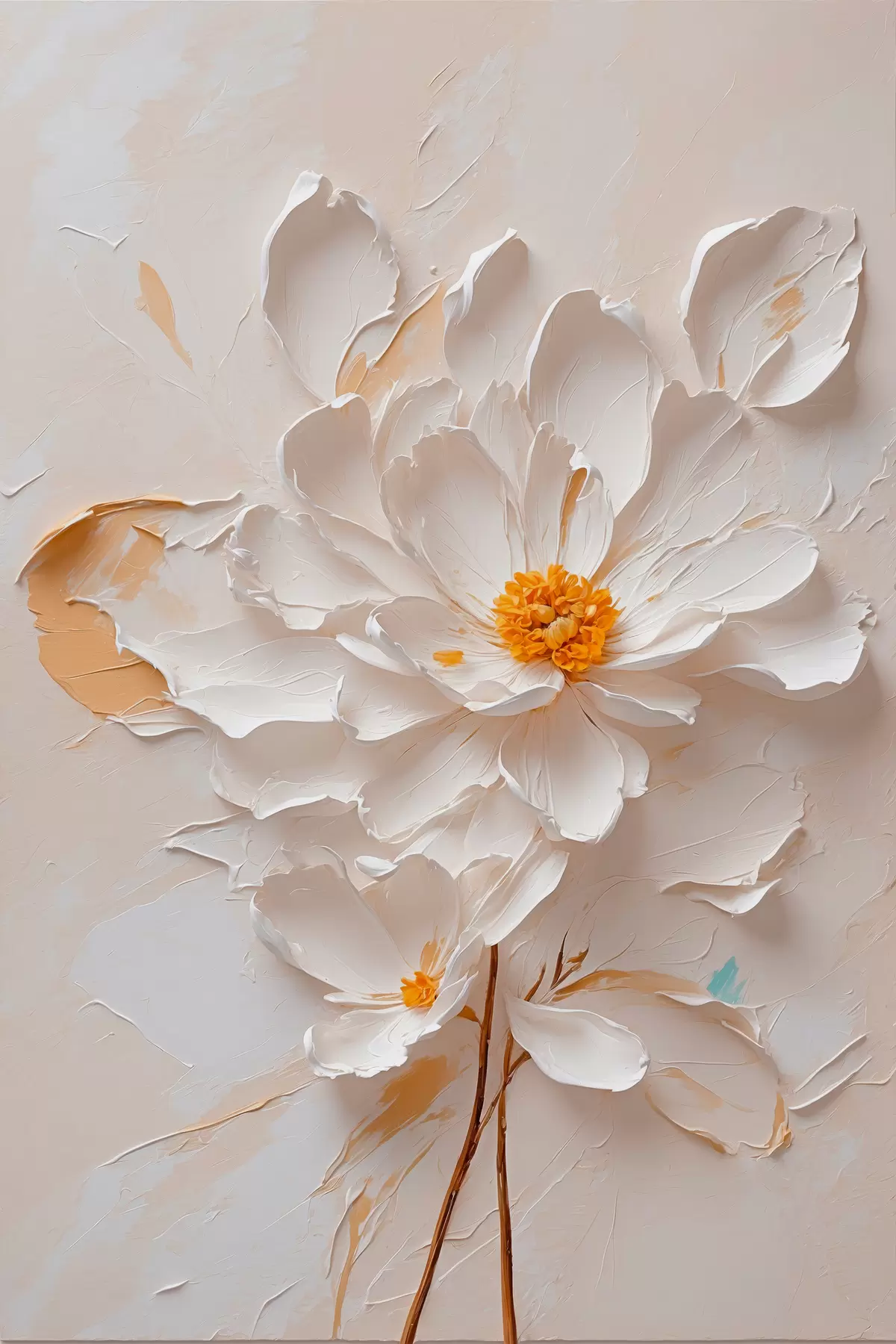 Poster Fiore bianco in olio con gambo marrone Nr f40619