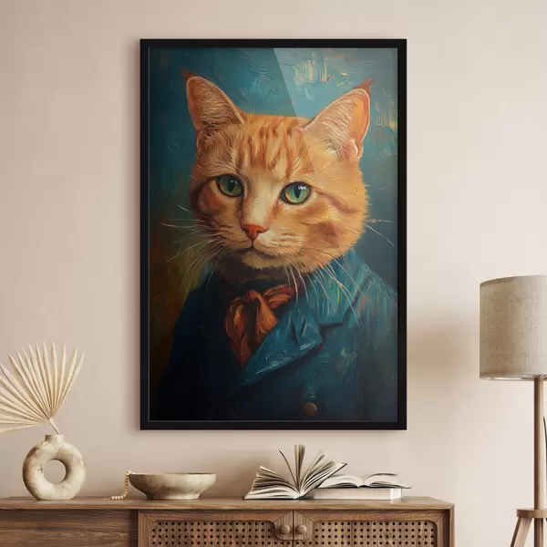 Poster Gatto rosso in abito da sera nello stile di un ritratto di Van Gogh f40647