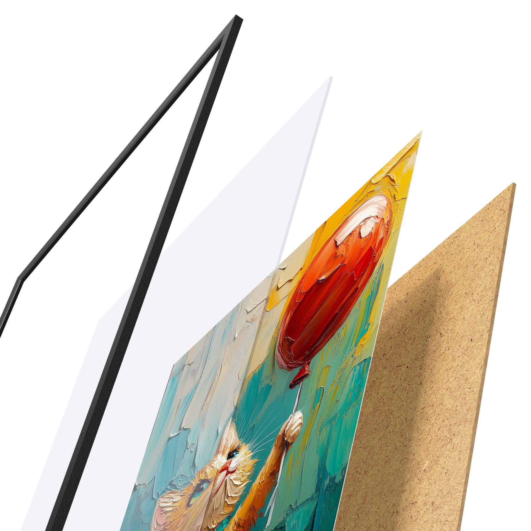 Il poster è composto da cornice, plexiglass, immagine stampata e supporto in truciolato. Il poster può essere immediatamente appeso alla parete grazie ai supporti sul retro.