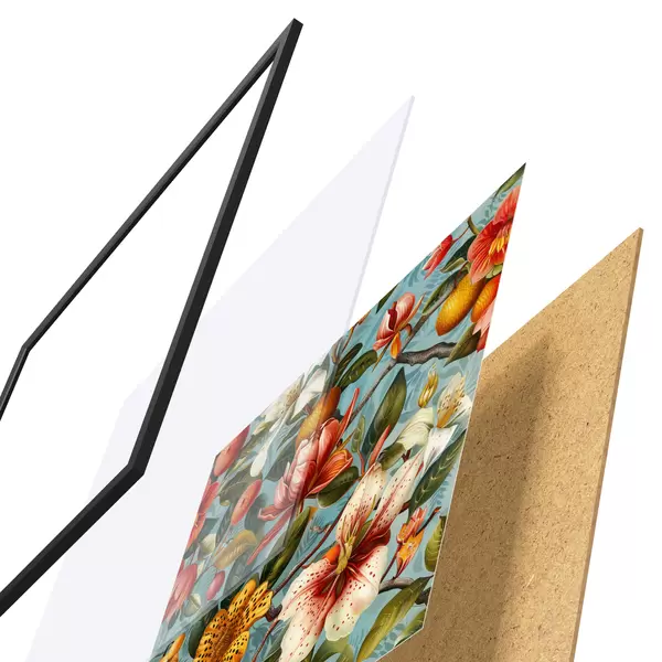 Il poster è composto da cornice, plexiglass, immagine stampata e supporto in truciolato. Il poster può essere immediatamente appeso alla parete grazie ai supporti sul retro.