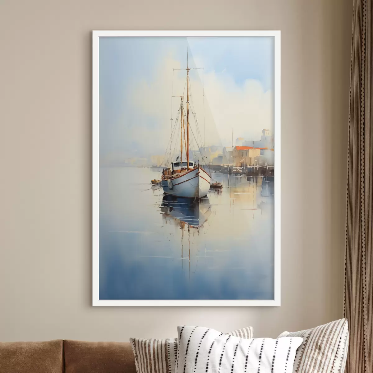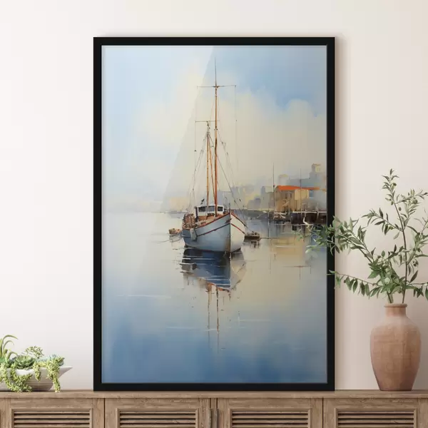 Poster Barca da pesca al molo sul mare acquerello bagnato Nr f40688