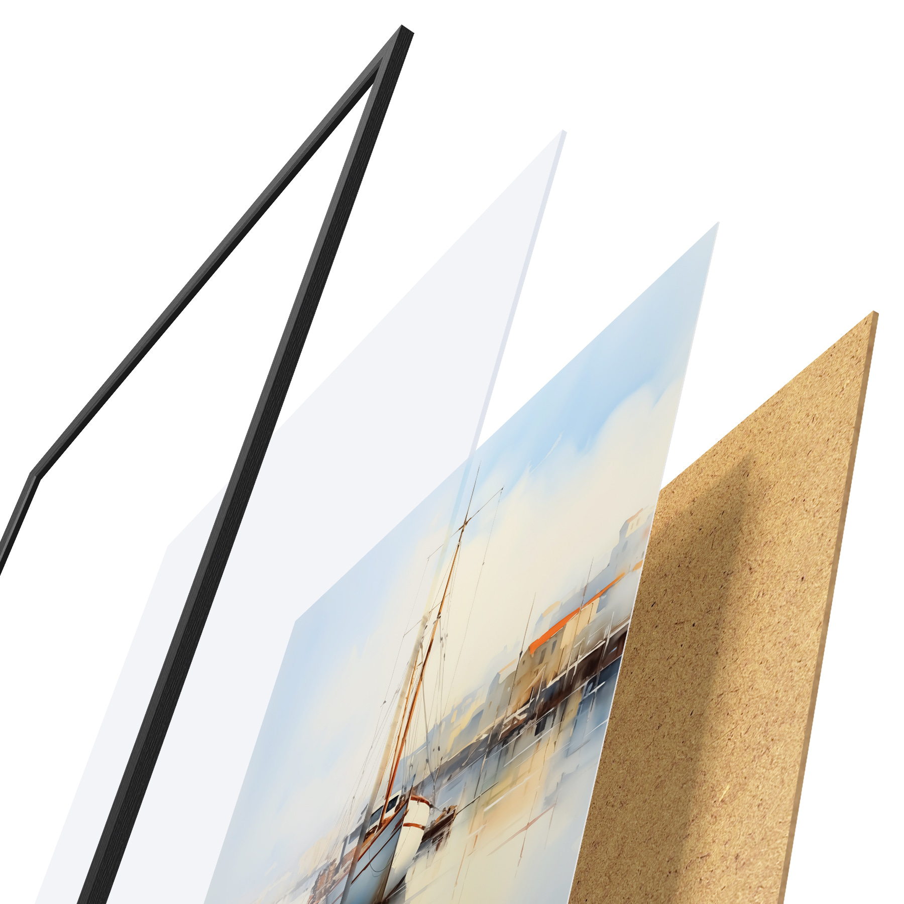 Il poster è composto da cornice, plexiglass, immagine stampata e supporto in truciolato. Il poster può essere immediatamente appeso alla parete grazie ai supporti sul retro.