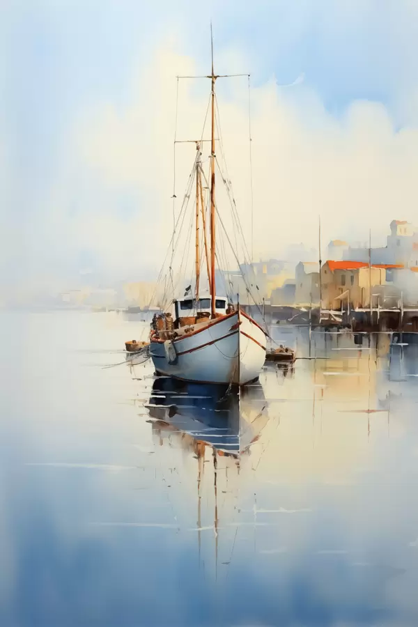 Poster Barca da pesca al molo sul mare acquerello bagnato Nr f40688