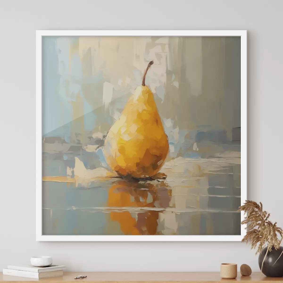 Poster Pera su sfondo pastello, colore giallo, arancione, grigio Nr f40690