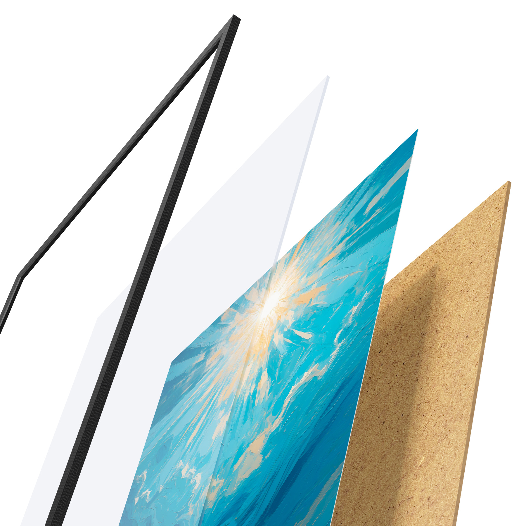 Il poster è composto da cornice, plexiglass, immagine stampata e supporto in truciolato. Il poster può essere immediatamente appeso alla parete grazie ai supporti sul retro.