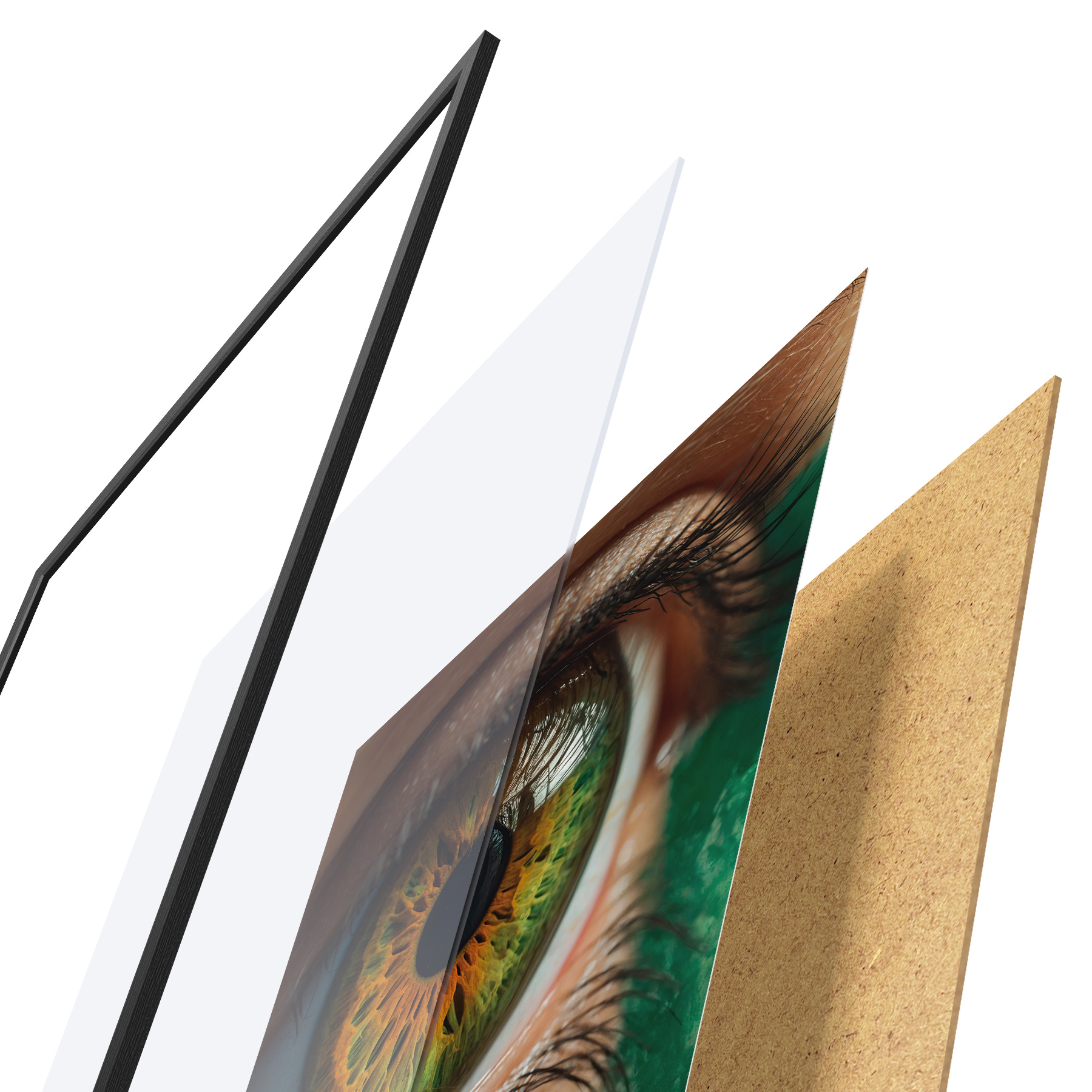 Il poster è composto da cornice, plexiglass, immagine stampata e supporto in truciolato. Il poster può essere immediatamente appeso alla parete grazie ai supporti sul retro.