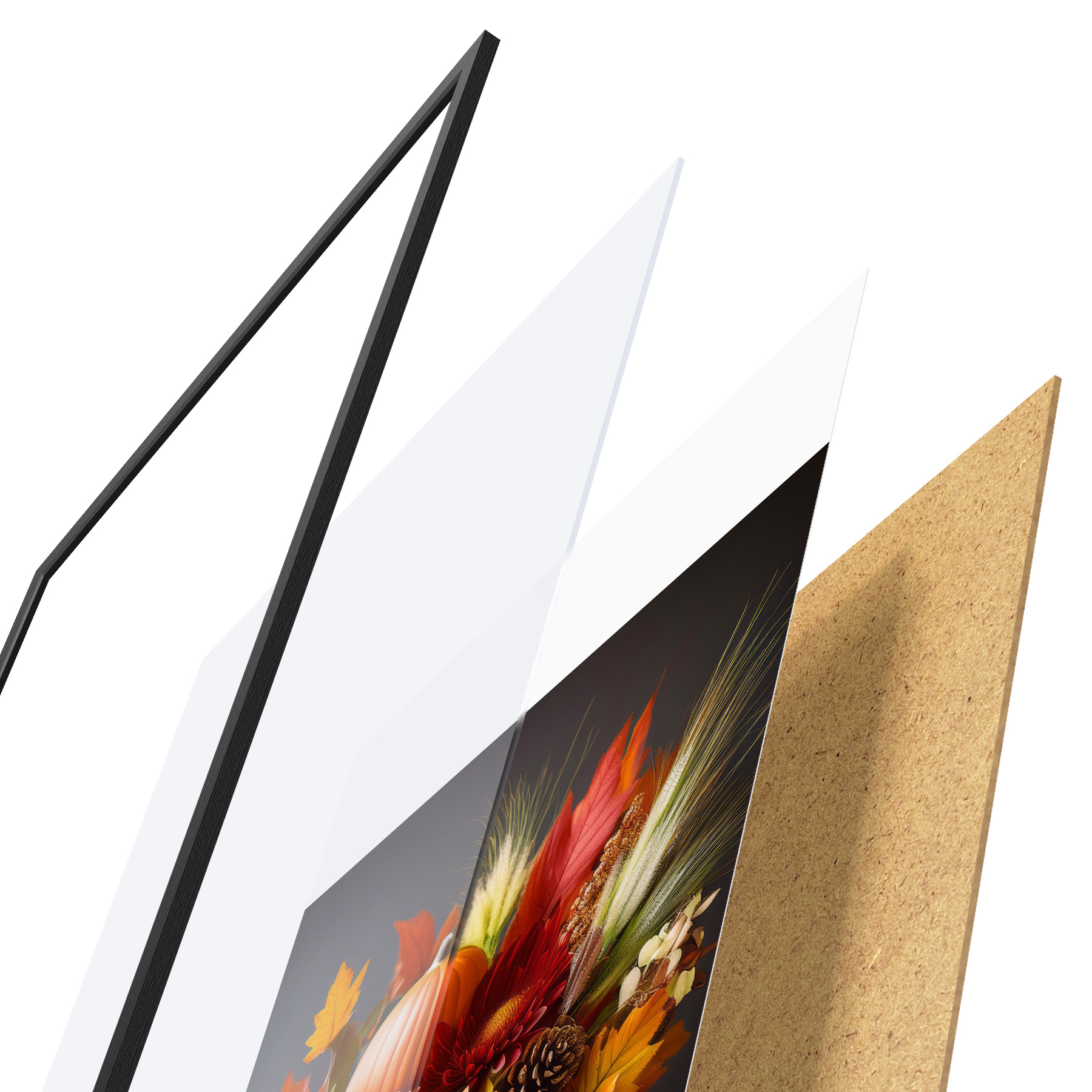 Il poster è composto da cornice, plexiglass, immagine stampata e supporto in truciolato. Il poster può essere immediatamente appeso alla parete grazie ai supporti sul retro.